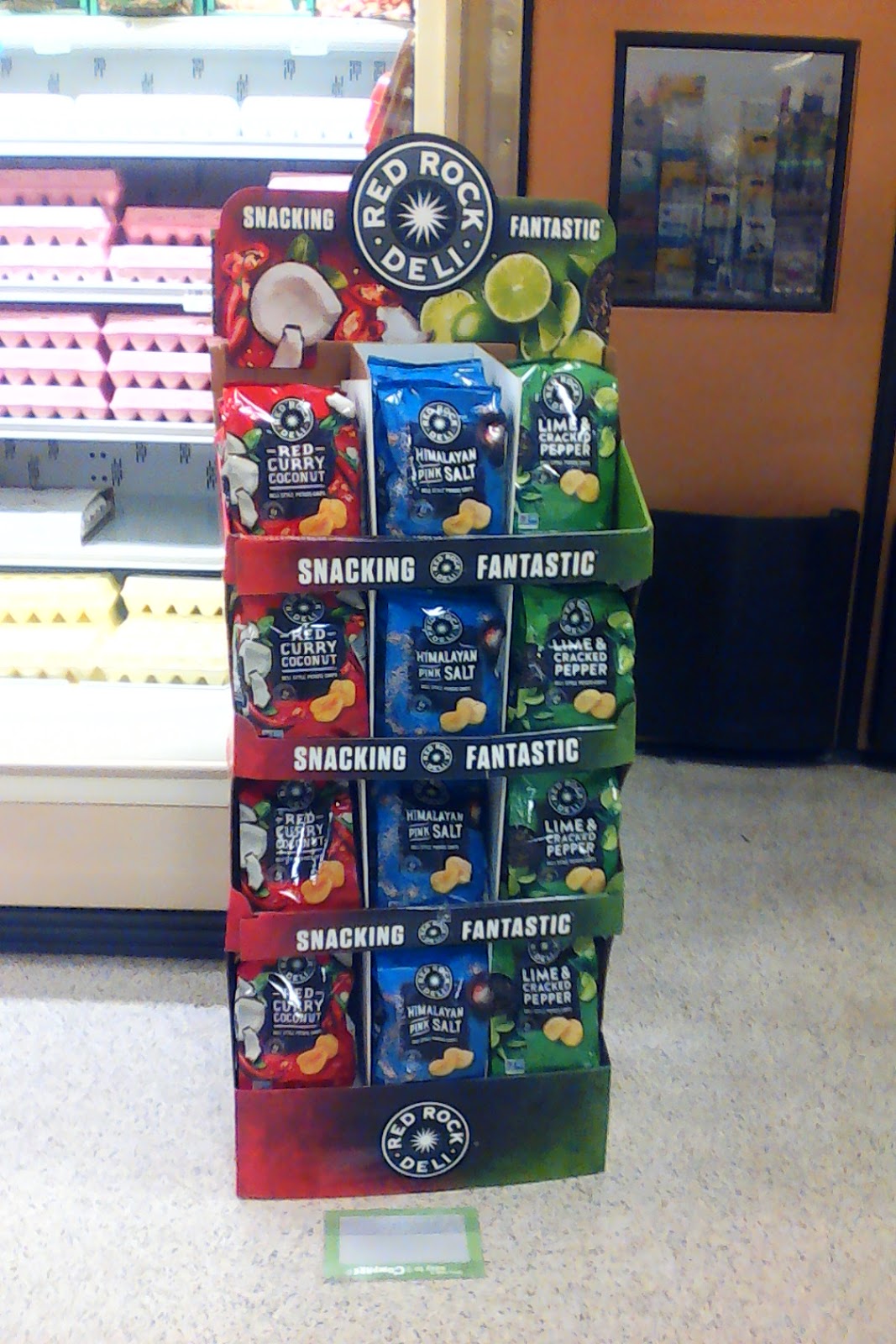 This project was part of a co-op deal between Red Rock Deli Chips and Kroger. Red Rock Deli chips were new to American grocery stores, so this campaign was meant to show case the flavors of chips, and show the user the location of the nearest Kroger grocery store selling them. I was given the artwork for this shelving display, and told to create both the static banners and the expanded state.